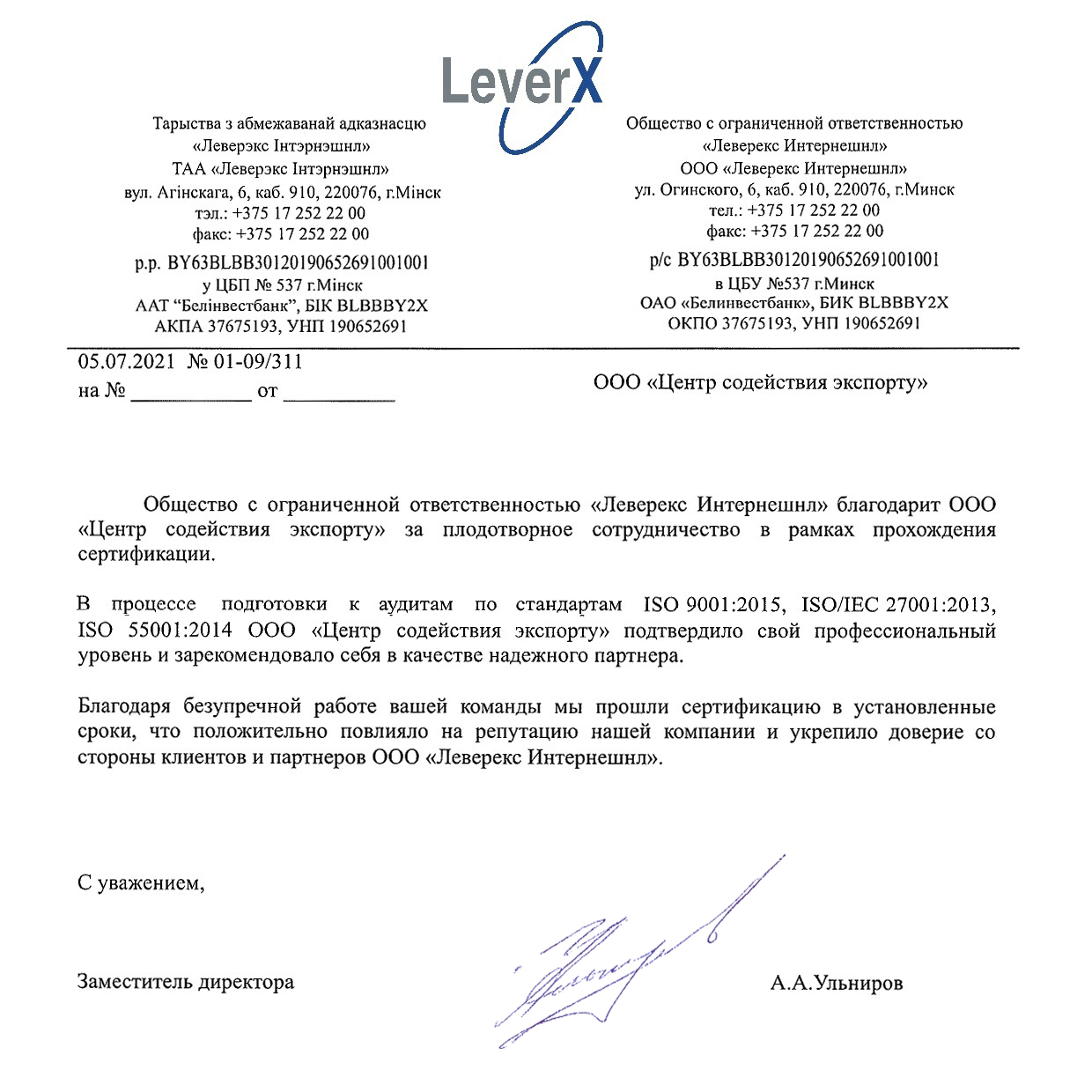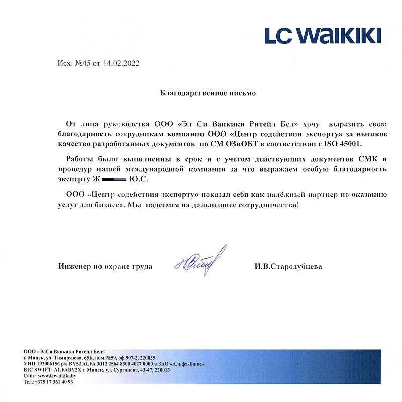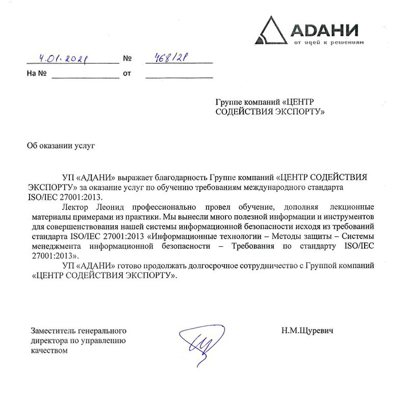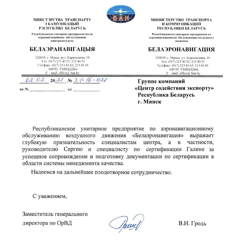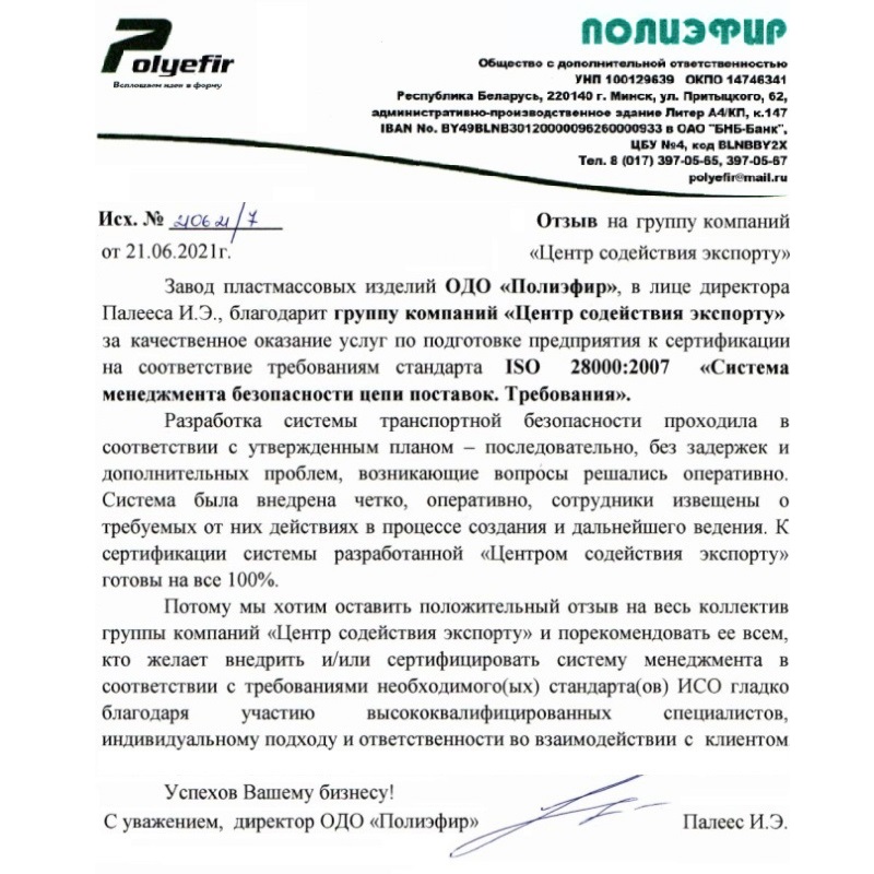 — Подготовка к сертификации в РБ (СТБ ИСО) и зарубежье любых предприятий;