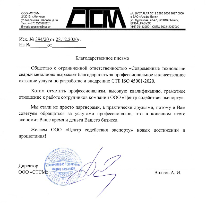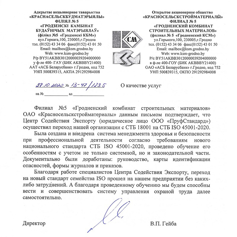 Обращаем внимание, что сертификат СТБ ISO 45001-2020 признается только на территории Республики Беларусь и в некоторых странах ЕврАзЭС. Для выхода на другие рынке, ознакомьтесь с предыдущим текстовым блоком.