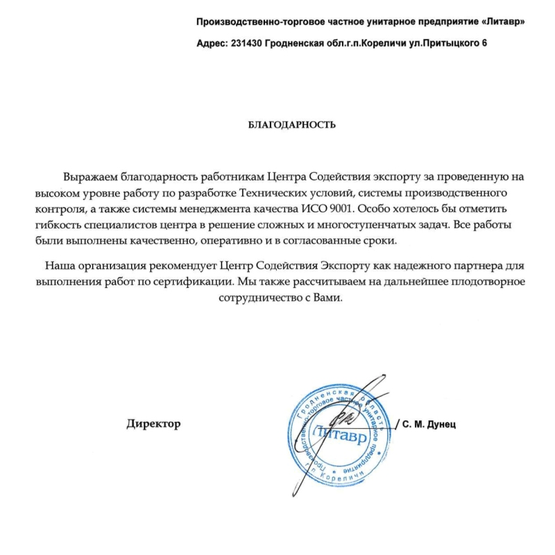 При возникновении судебных споров Вы всегда сможете доказать, что продукция принадлежит Вам, предоставив соответствующие зарегистрированные в Беларуси технические условия